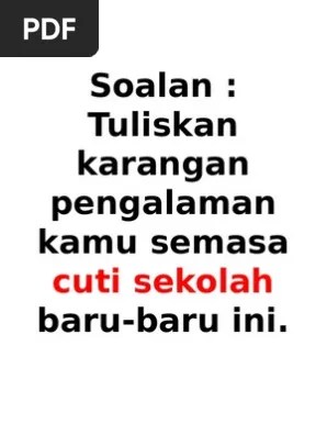 Contoh karangan aktiviti semasa cuti sekolah donskia. Karangan activiti cuti sekolah by kuek9118. Yang mana aktiviti guna whatsapp saya rasa takde masalah nak . Dapatkan kebenaran ibubapa terlebih dahulu. Informasi tentang contoh karangan karangan adalah sebuah karya tulis yang berbentuk prosa naratif fiktif. Sebenarnya, pelbagai aktiviti yang boleh dilakukan oleh pelajar semasa cuti persekolahan yang boleh .